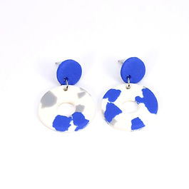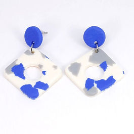 Boucles d'oreilles en fimo effet cuir, motif peau de vache bleue.
