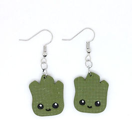 Boucles d'oreilles inspirées par le personnage Groot. Non vernies.