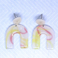 La collection Janette est issue du recyclage. Je n'aime pas jeter sans raison, donc quand c'est possible je fais mon maximum pour utiliser des pâtes plus anciennes qui ont un peu durci pluôt que de les jeter. Ici il s'agit de pâtes translucides colorées sur de la pâte transparente, résinée après cuisson, le look est assez minimaliste, acidulé et très doux.